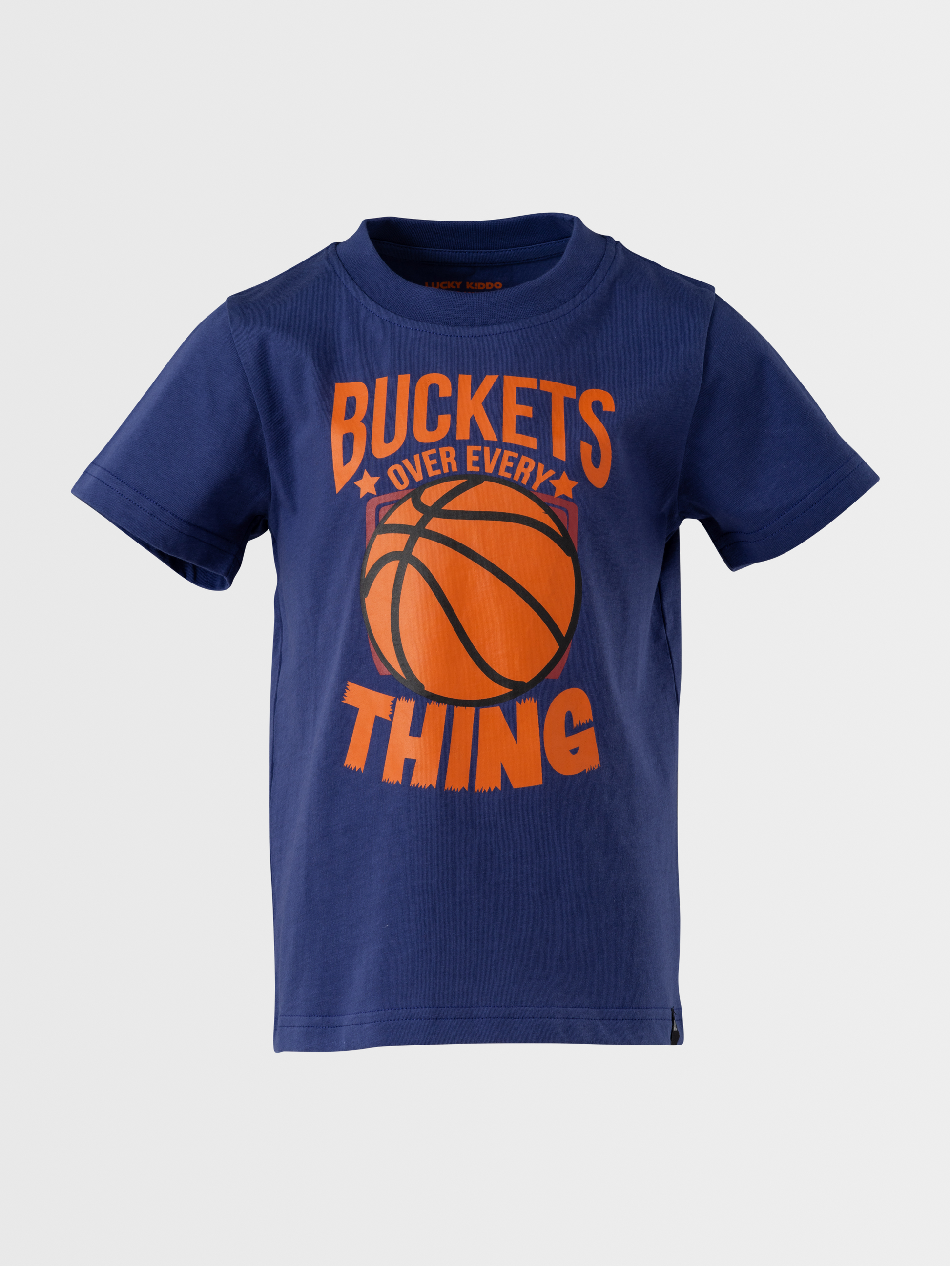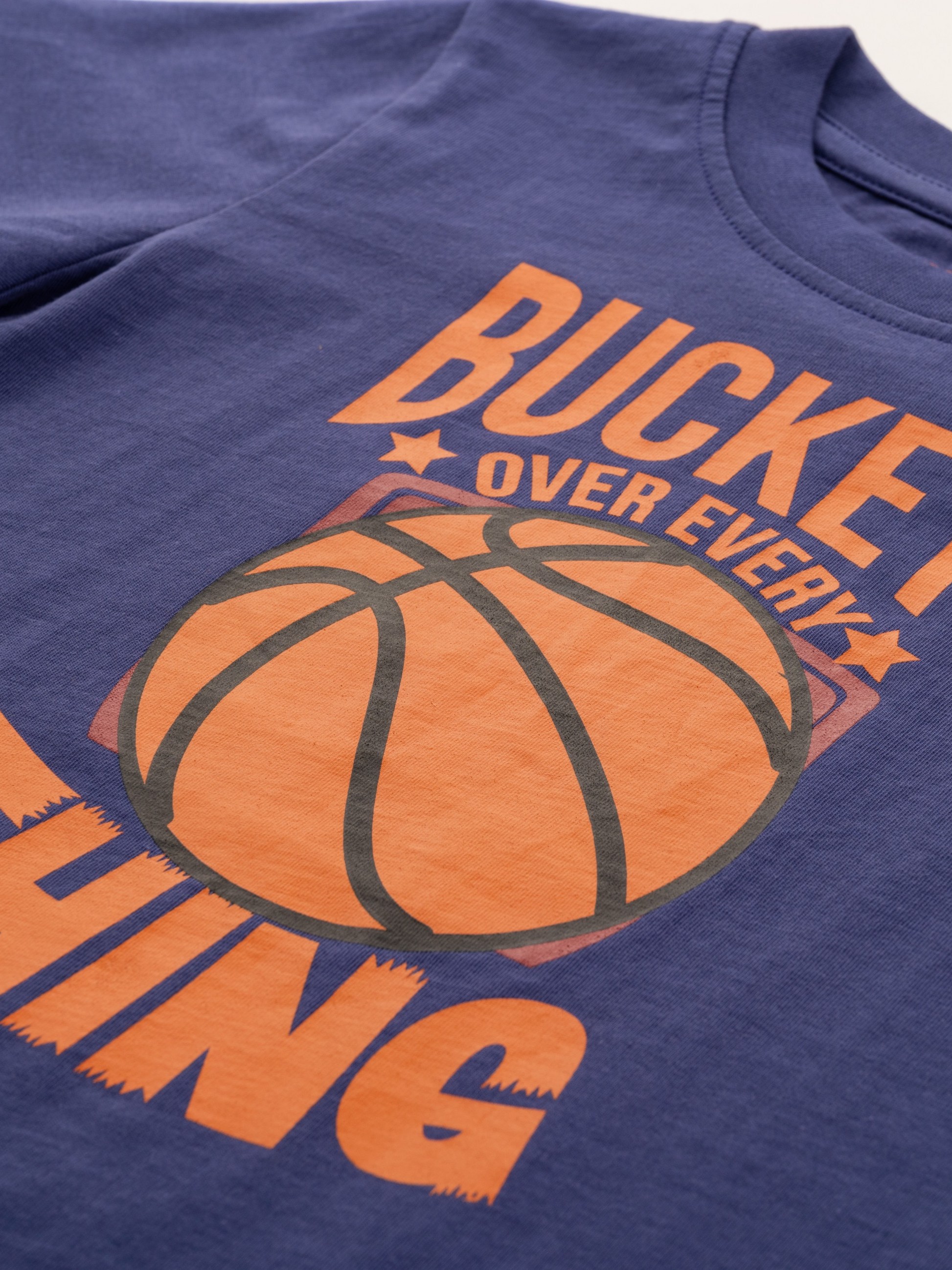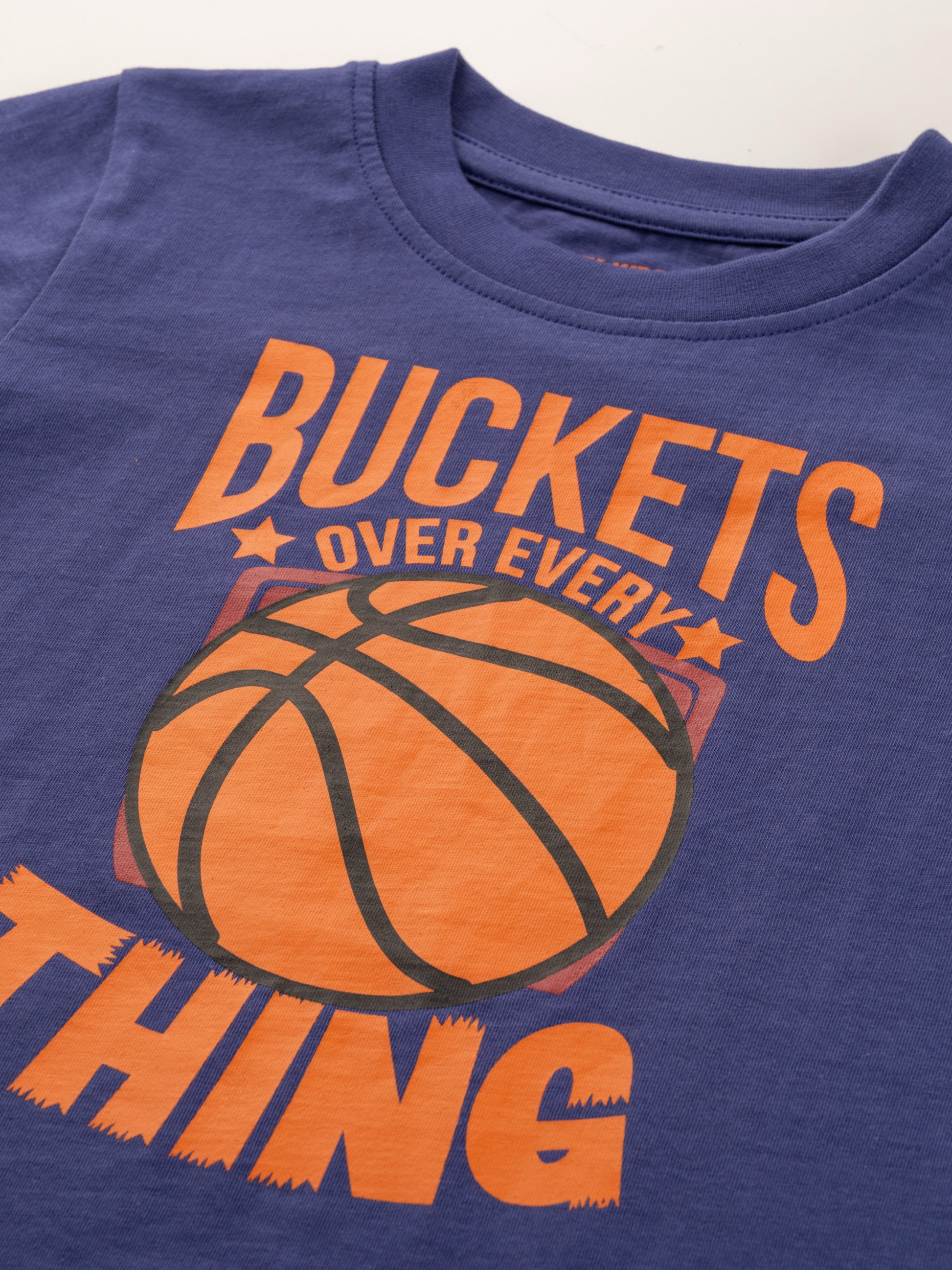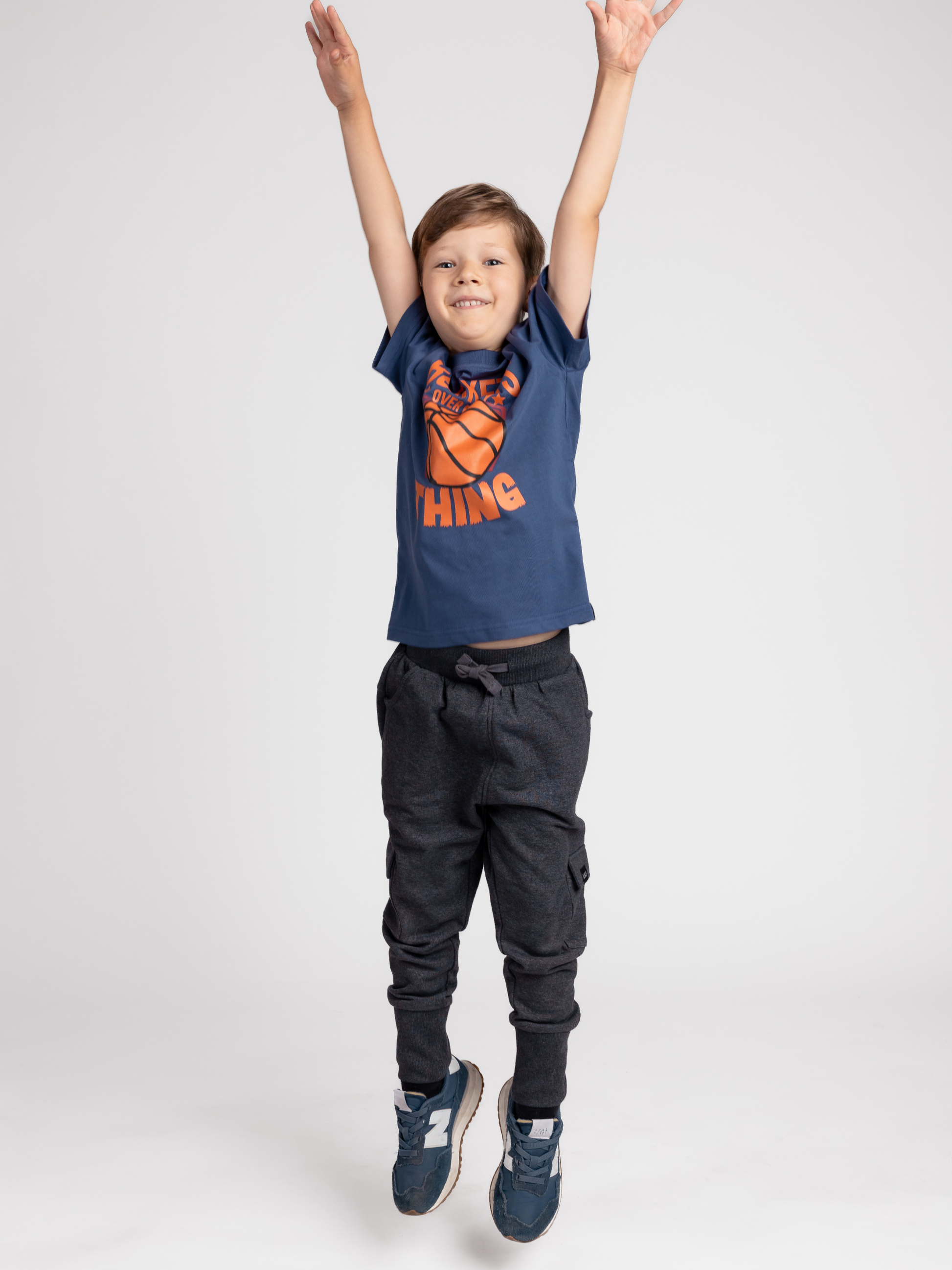 Ez a rövid ujjú fiú póló a jövő kosárlabda bajnokainak készült! Puha pamutból készült, amely kényelmet biztosít a játszótéri vad játékok során és a hárompontos dobásokról való álmodozás közben is. Tökéletes választás az ugrással, szórakozással és felejthetetlen pillanatokkal teli aktív napokra!