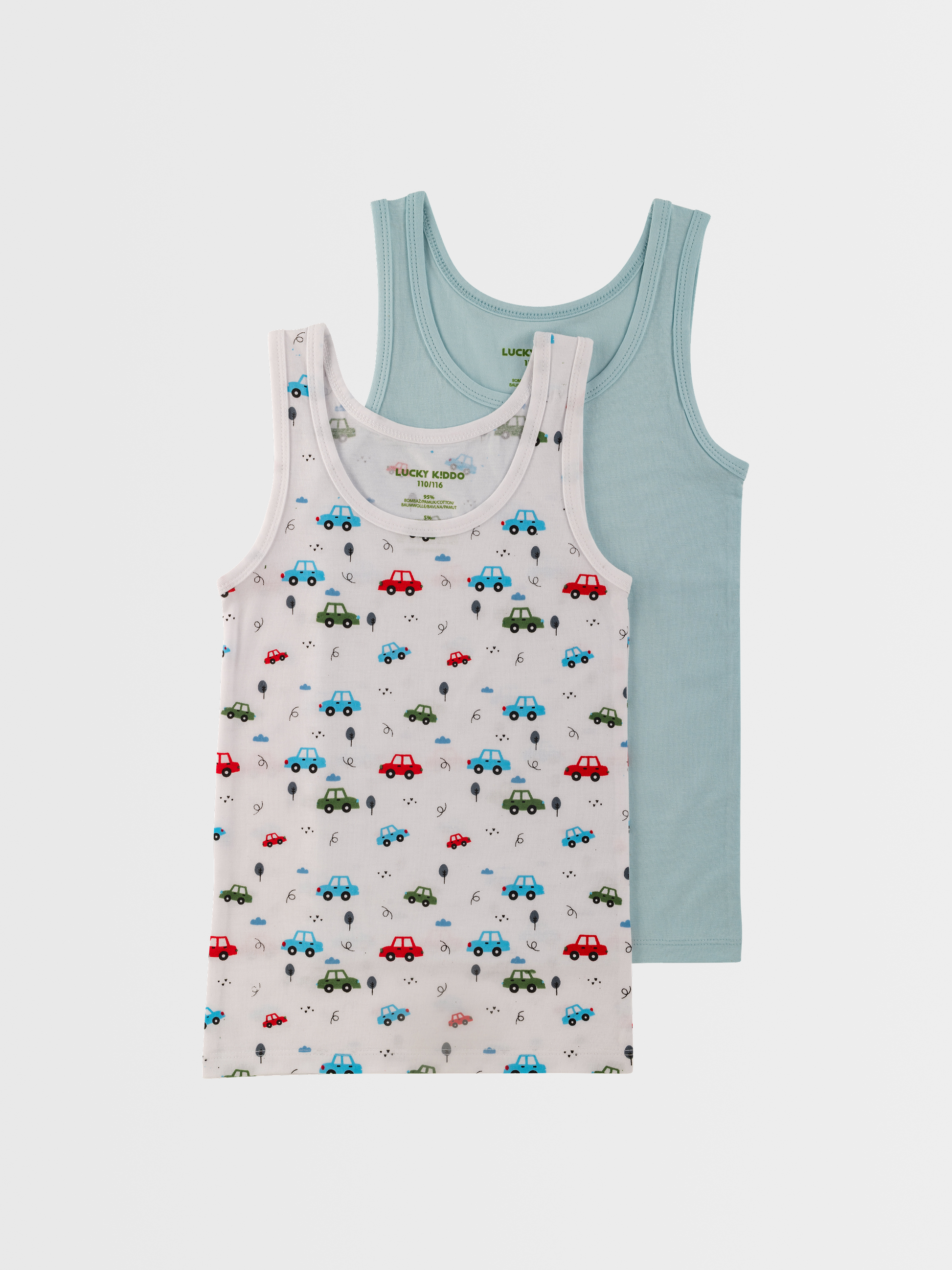 A Lucky Kiddo fiú alsó trikók 2 darabos csomagban egyesítik a kényelmet, a minőséget és a vidám stílust.
