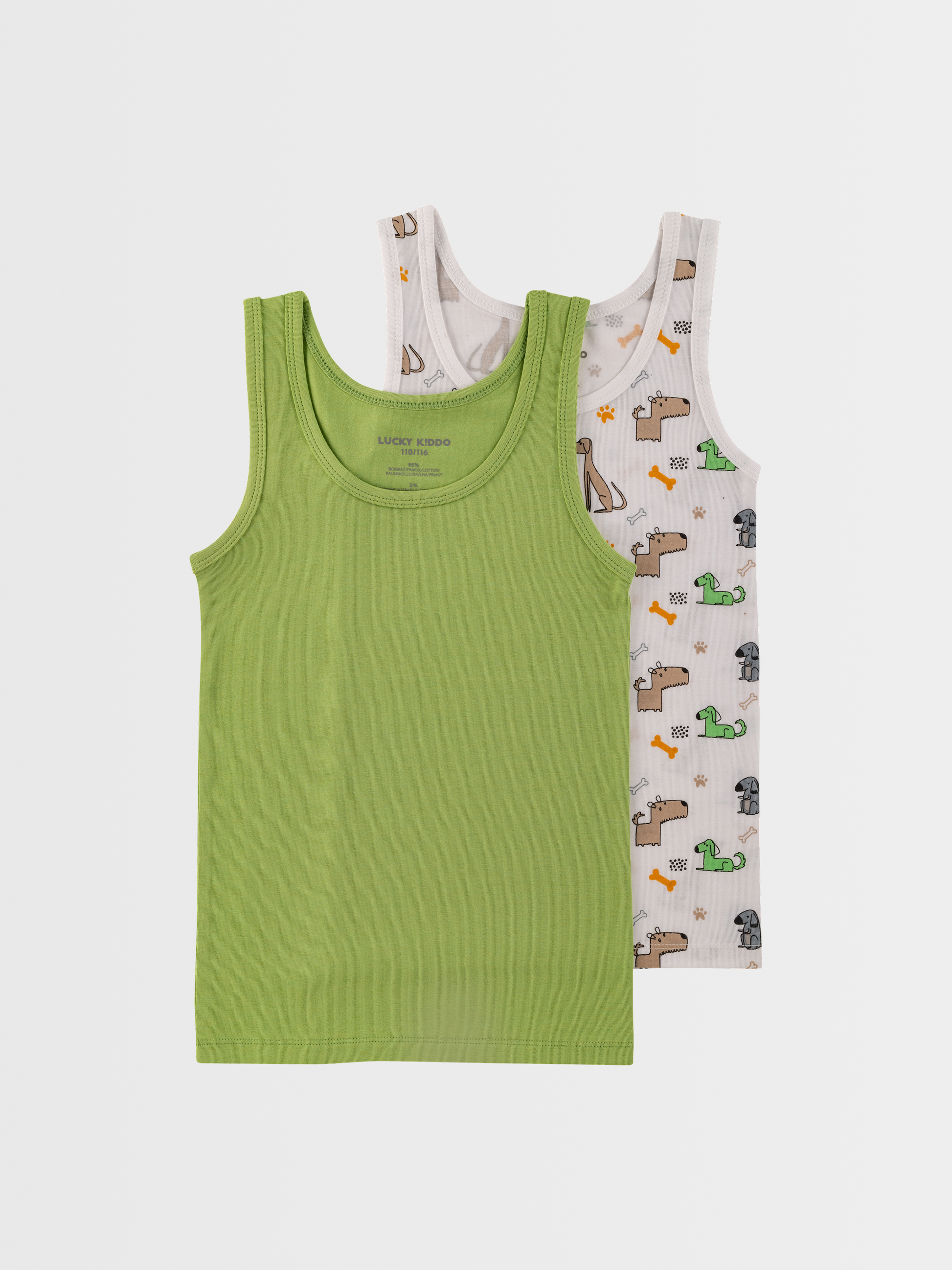 Vidd egy kis vidámságot a mindennapi alapdarabokba a Lucky Kiddo fiú alsó trikók 2 darabos csomagjával!