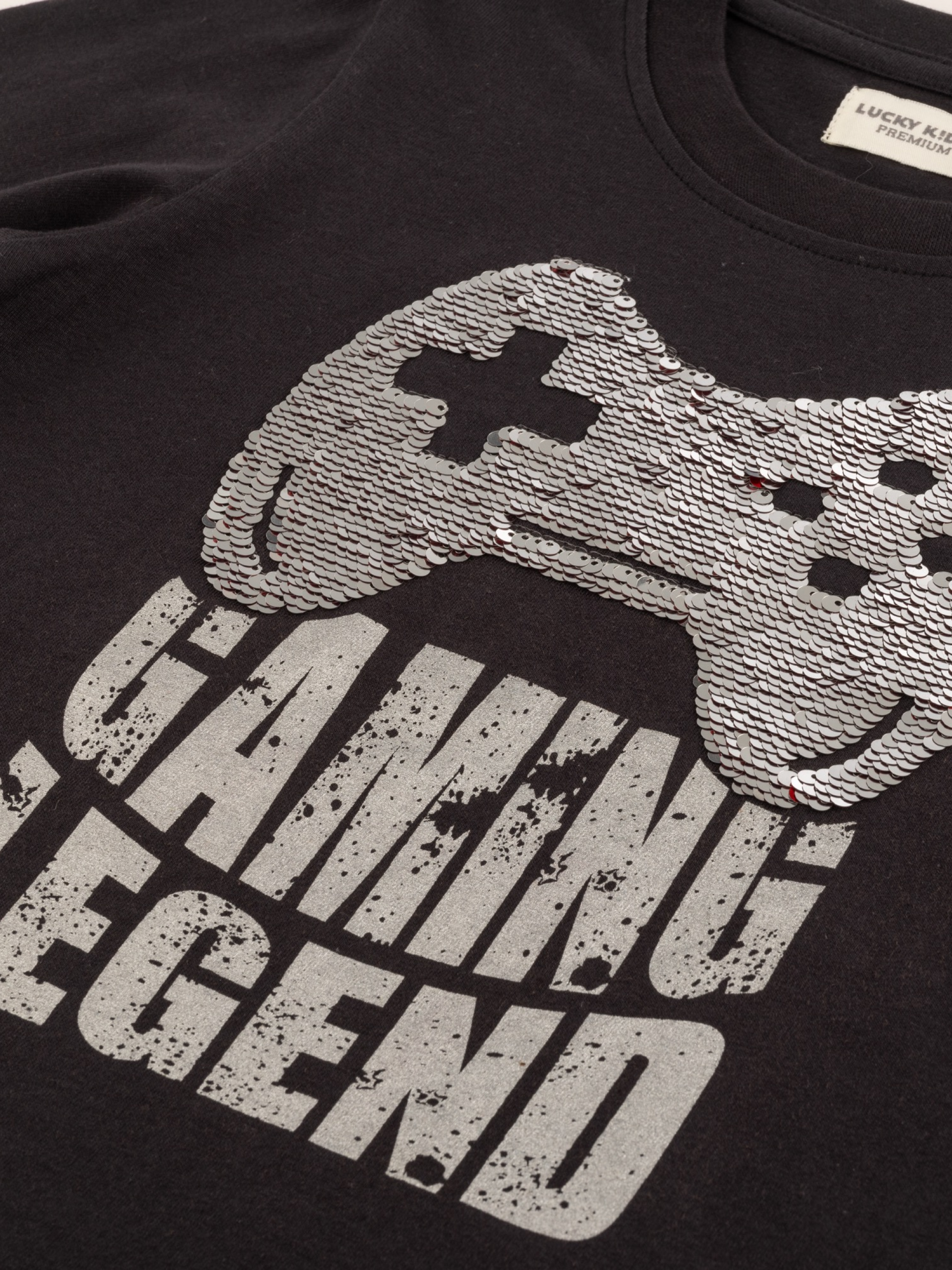 Kezdődjön a játék ezzel a szórakoztató Lucky Kiddo pólóval! Az elején egy menő játékkonzol applikáció díszíti, amely egyetlen mozdulattal változtatja a színét – a vad vörösből ragyogó ezüstté! Tökéletes minden kis játékos számára, akik szeretnek kitűnni – akár a játszótéren, akár egy izgalmas számítógépes küldetés közben.