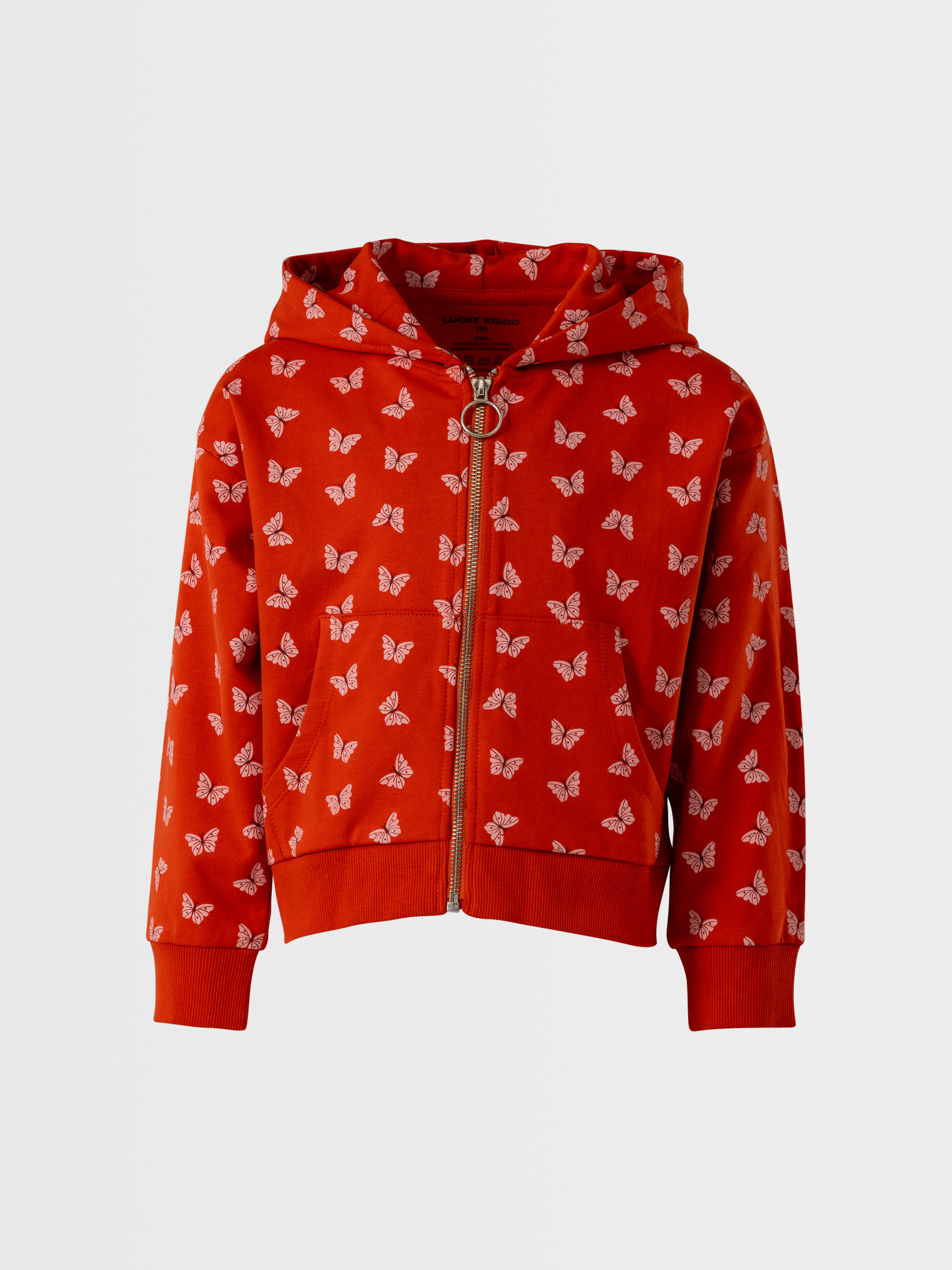 Ez a gyönyörű Lucky Kiddo cipzáras kapucnis pulóver, amelyet beborít a pillangóminta, egyenesen a fantázia és a szórakozás világába repíti a kicsiket! Természetes anyagból készült az extra puhaságért, így tökéletes választás, hogy bármelyik napot beragyogja a kényelem, a szín és a báj.