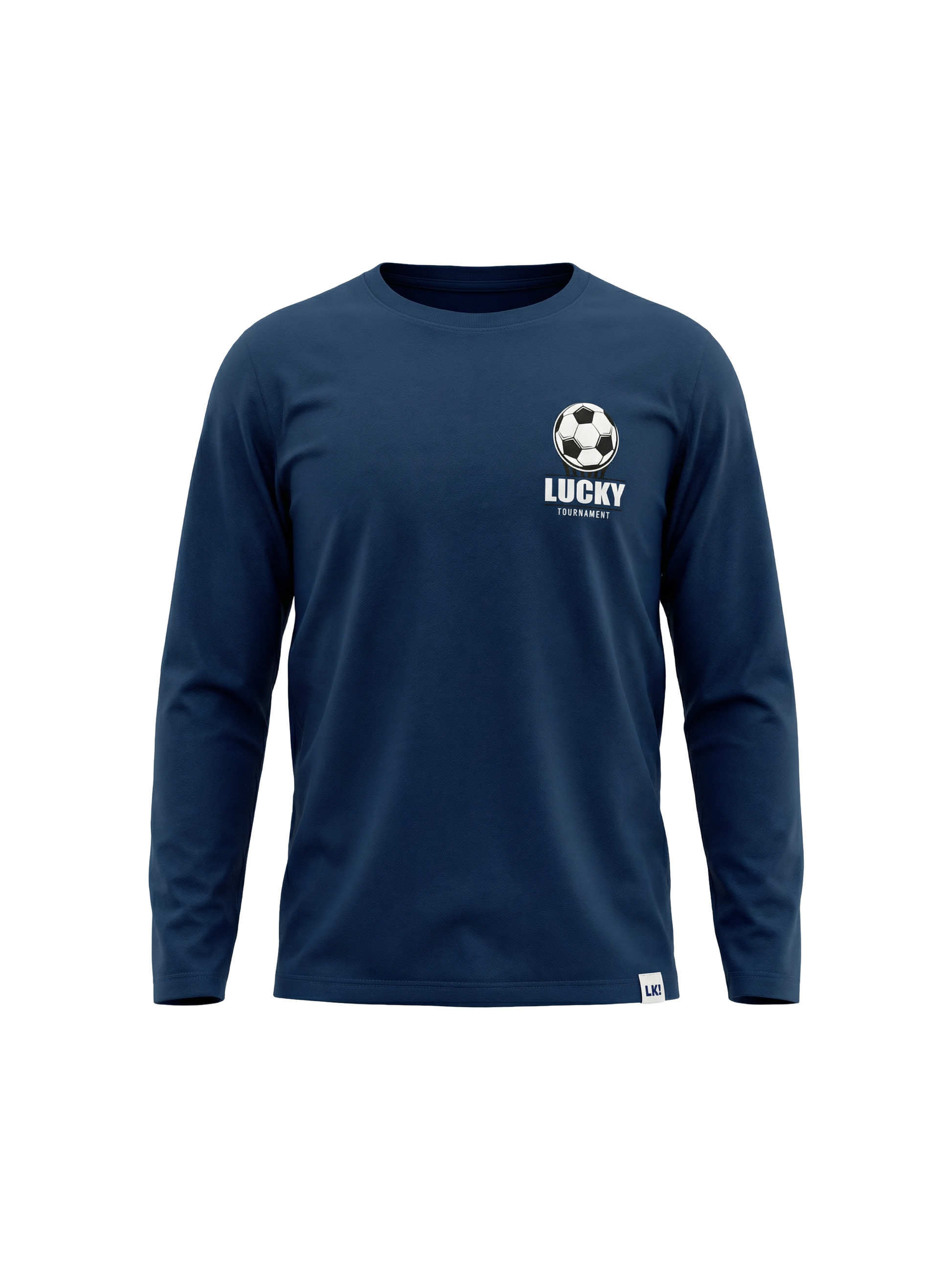 Ez a mélykék hosszú ujjú pamut póló tökéletes választás minden kis sportolónak, aki imádja a focit, és győztes gólról álmodik!
