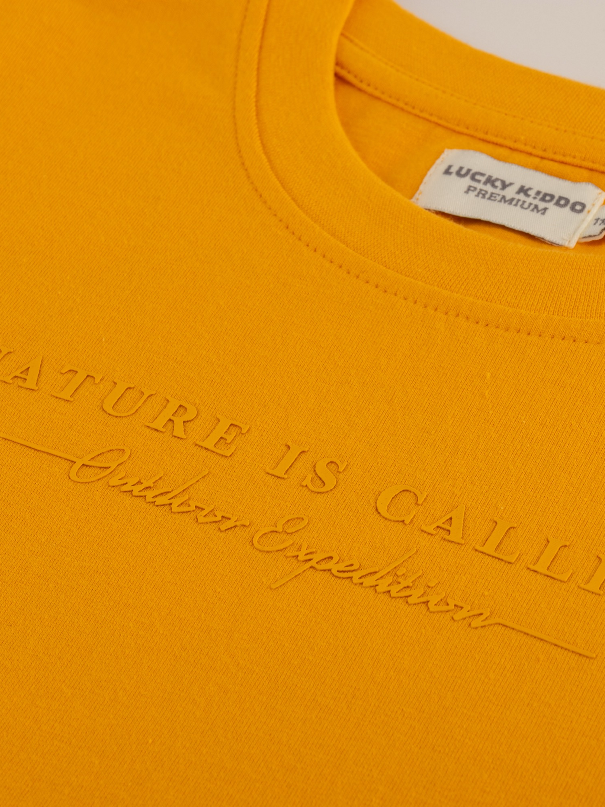A természet hív – és ez a napsárga Lucky Kiddo póló készen áll a bevetésre! Élénk árnyalatával felvidítja kis felfedezője mindennapjait, legyen szó egy vidám játékról a játszótéren vagy egy erdei sétáról. Kényelmes, puha és mindig készen áll az új kalandokra!
