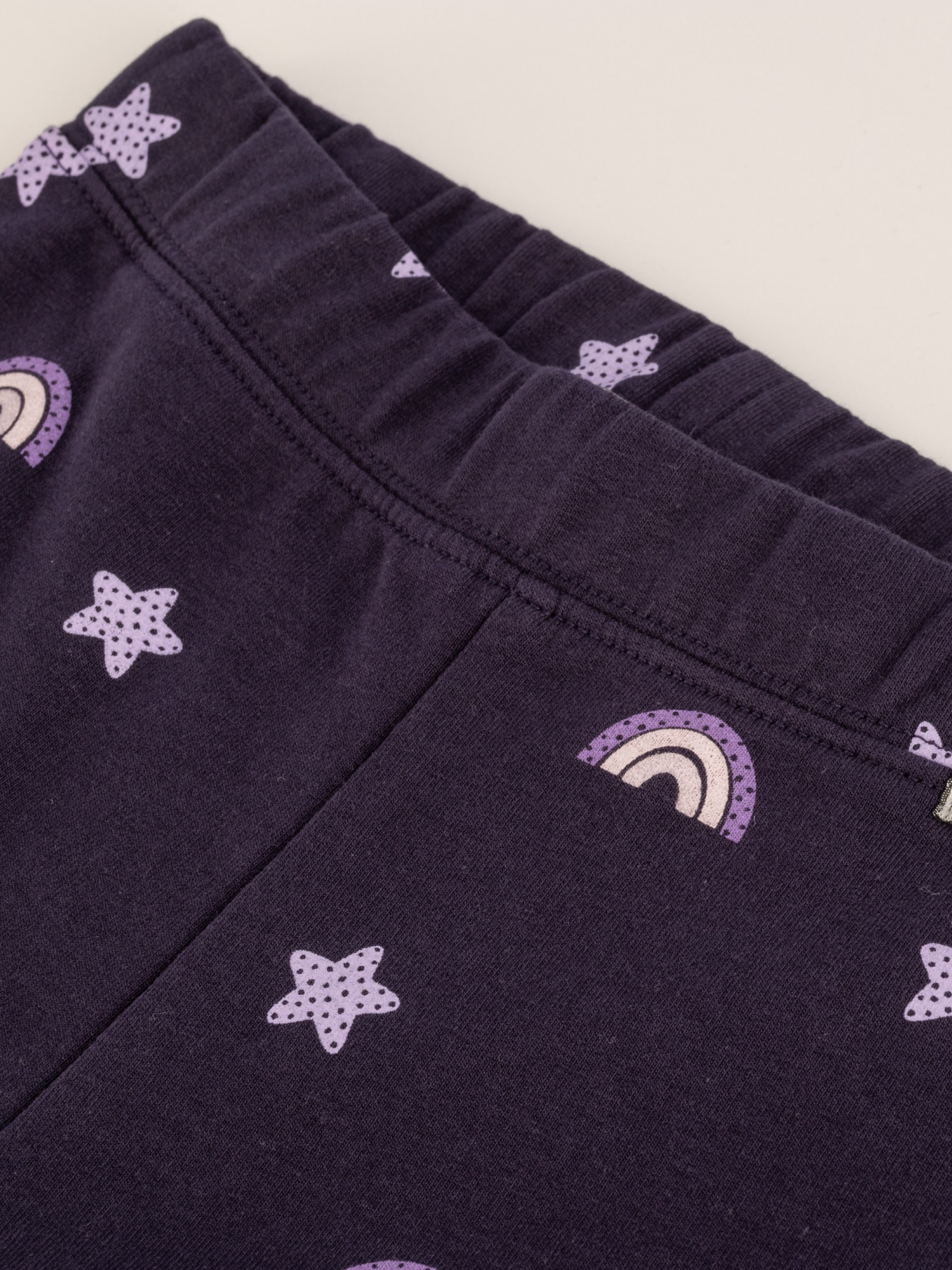Kapd el a szivárványt a bájos Lucky Kiddo leggingssel! A természetes anyag elasztán hozzáadásával készült, hogy tökéletesen illeszkedjen és kényelmet biztosítson minden lépésnél. A gyönyörű szivárványos minta pedig gondoskodik róla, hogy minden nap egy kicsit varázslatosabb legyen – kezdődjön a játékos nap!