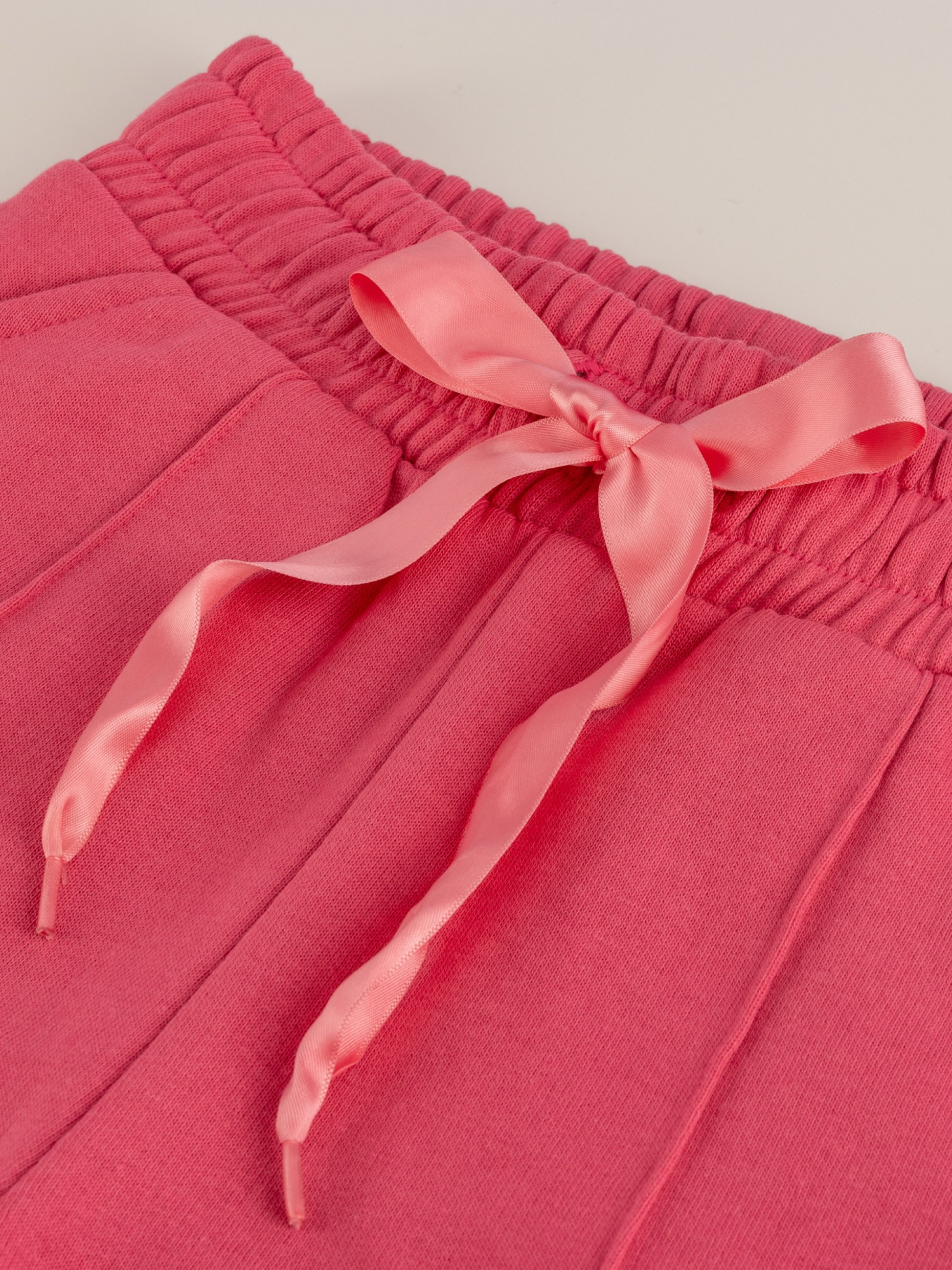 Ez a Lucky Kiddo lány melegítő a gyönyörű rózsaszín árnyalatban a kislányok minden napját színekkel, stílussal és kényelemmel tölti meg! A nadrágszáron lévő dekoratív csík divatos hatást kelt, a deréknál lévő zsinór és a nadrág végén lévő passzé pedig gondoskodik róla, hogy a melegítő a helyén maradjon – még ugrálás, játék és pörgés közben is. Tökéletes iskolába, a játszótérre vagy egy laza sétára!
