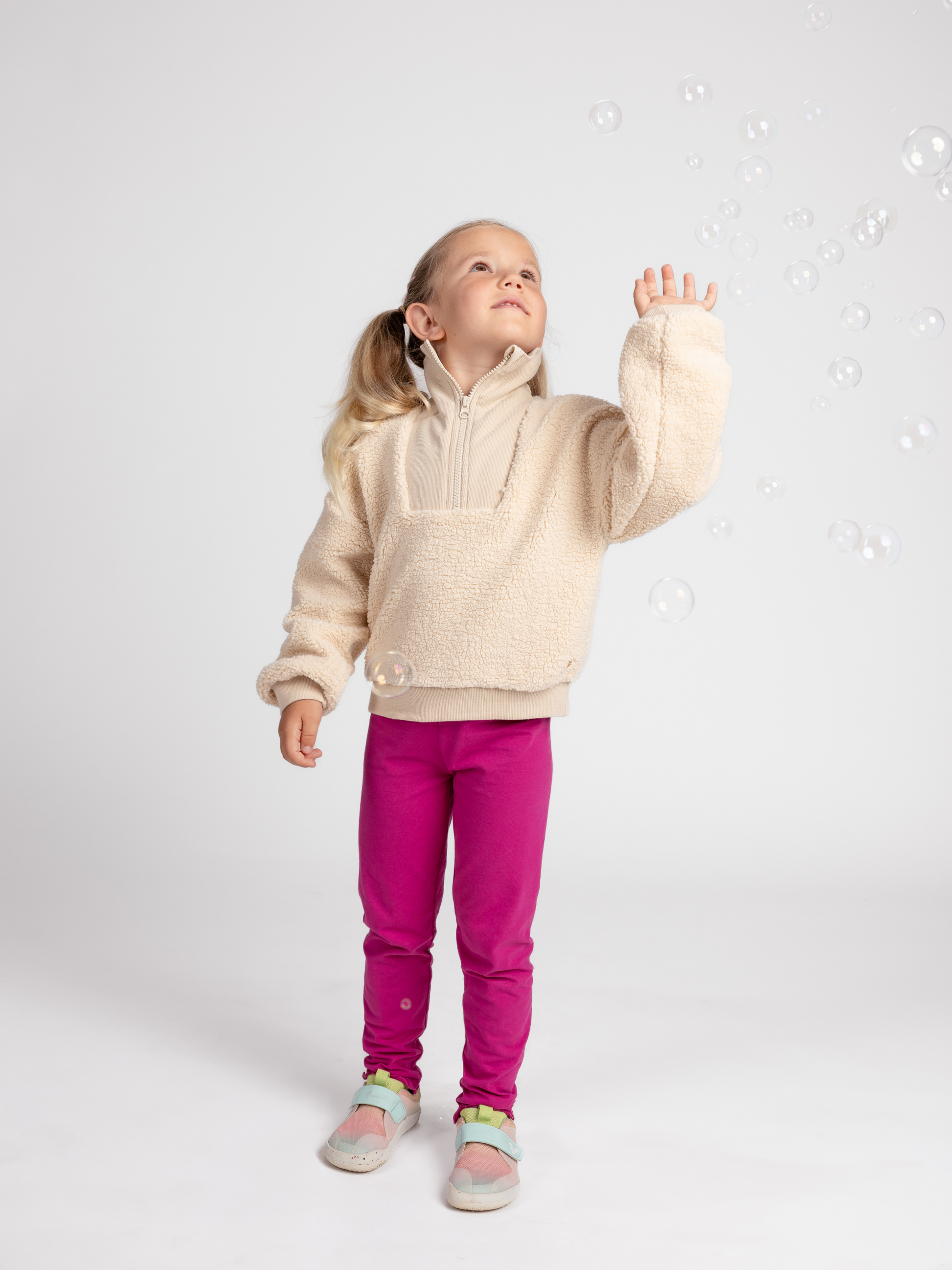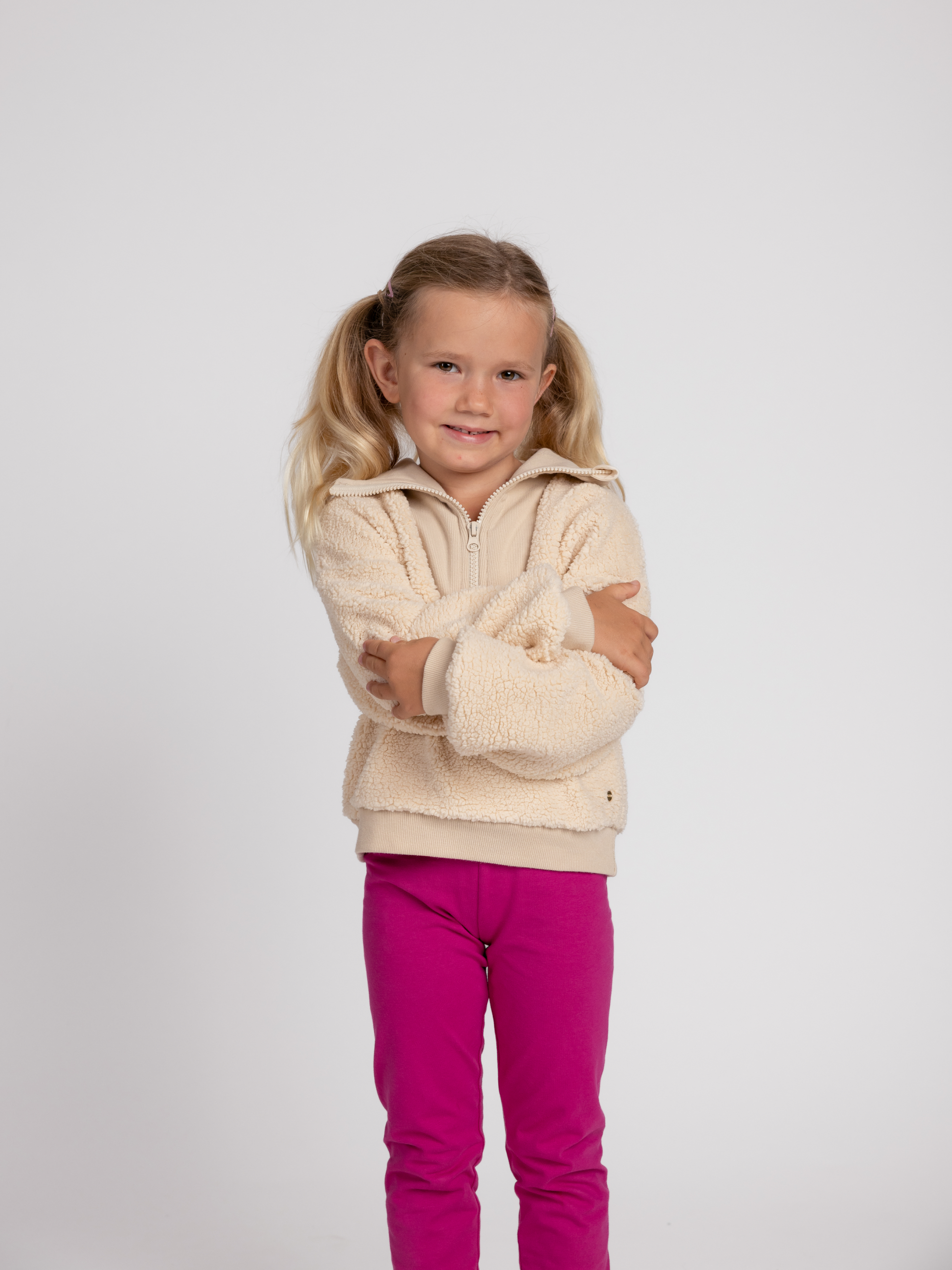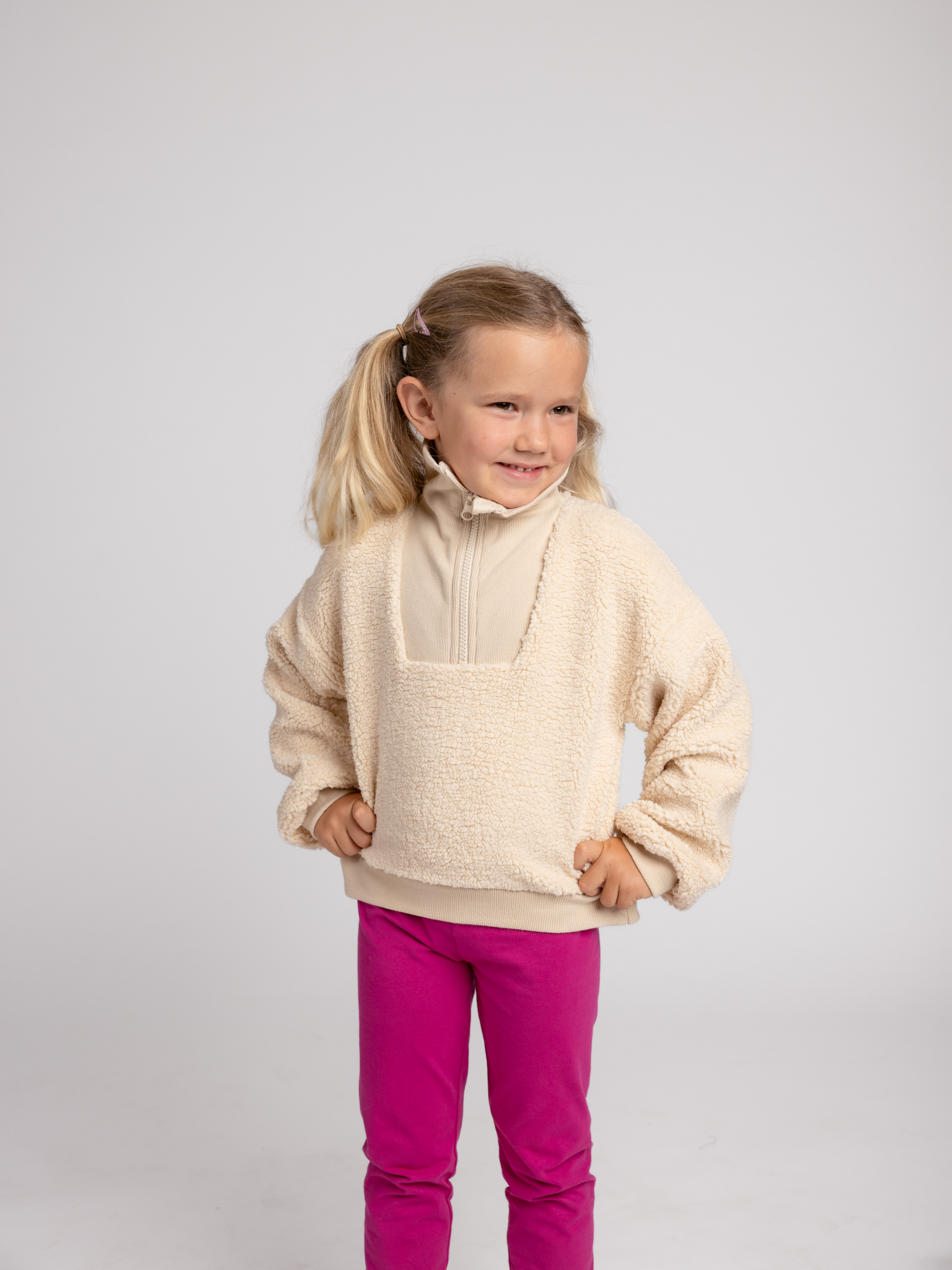 Érezd a kivételes puhaságot ebben a csodálatos Lucky Kiddo pulóverben, amely melegen tart és örömet okoz minden lépésnél. Az ujjakon és a derékon lévő passzéknak köszönhetően szépen a helyén marad, a nyakrészen lévő cipzár pedig megkönnyíti az öltözködést és az állítást – legyen meleg, kényelmes és játékos az egész nap!